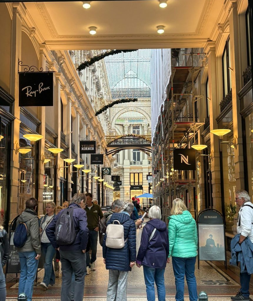 Vele fietsers ontwijkend kwamen we via de Spuistraat in de Passage, werelds eerste overdekte winkelstraat.