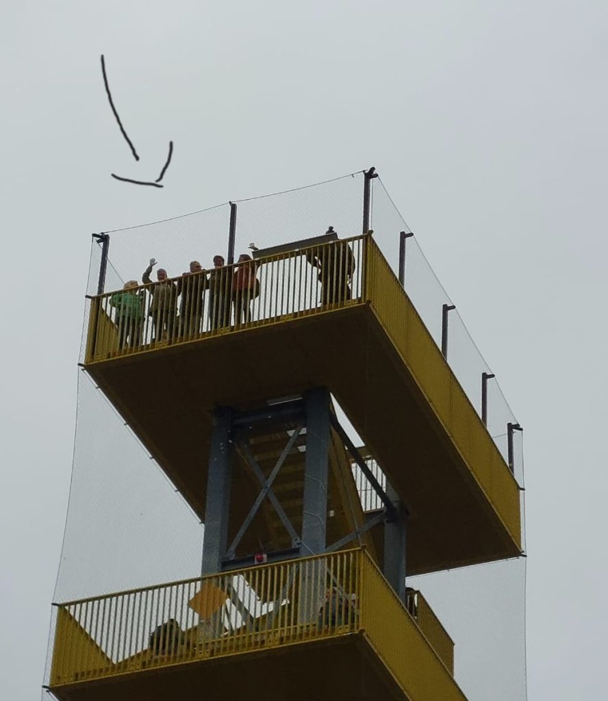 Vanaf de Vijverberg kwam de kijksteiger goed in beeld. 28 meter hoog. Aardig wat traptreden te gaan en boven op het platform was het best wel wiebelig.