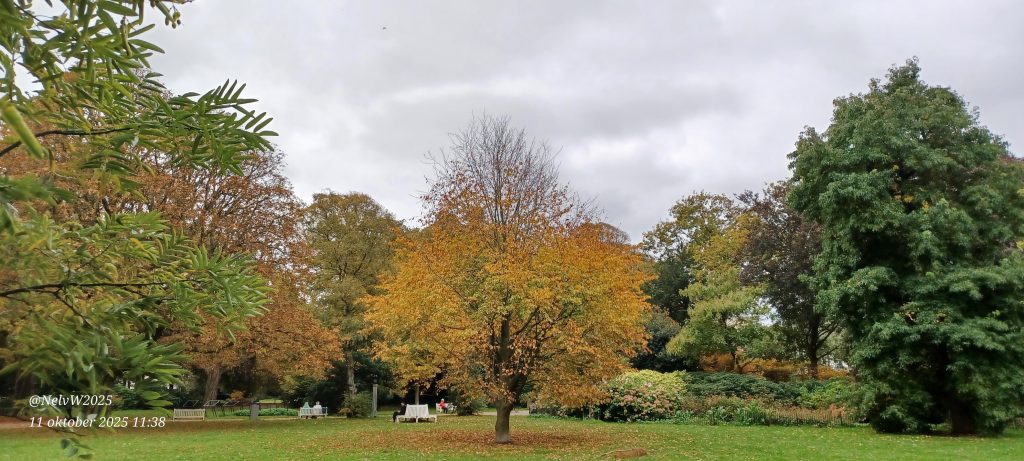 Een oase van rust, de bomen droegen al hun herfstkleuren.