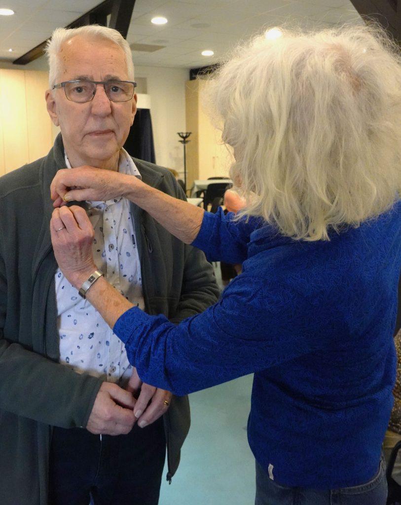 De enige aanwezige jubilaris (Ed Diersmann, ook namens Tonny) werd gehuldigd.